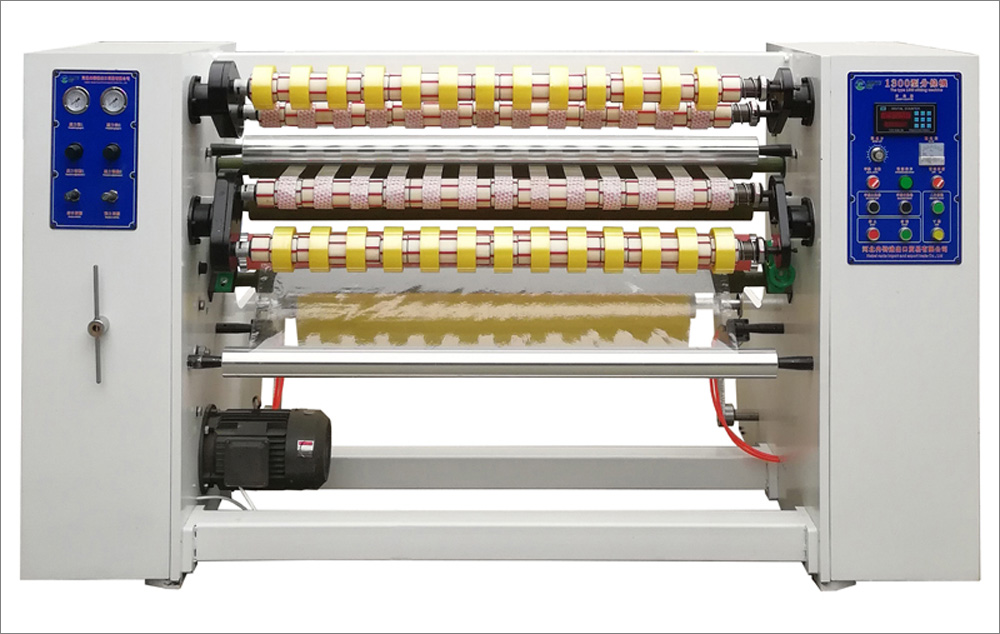 適用范圍:適用于各類透明封箱膠帶、印字印刷封箱膠帶半成品母卷的分條加工